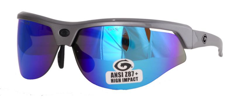 Gargoyles Primer Sunglasses Grey Frame /Carribean Blue Mirror Lens ANSI Z87.1 Ballistic Lens